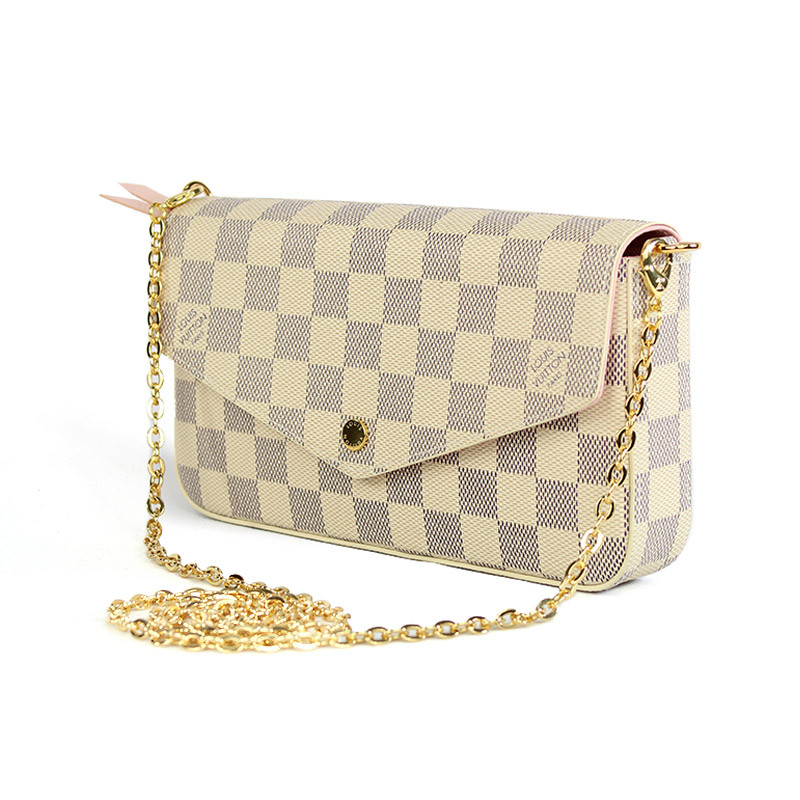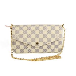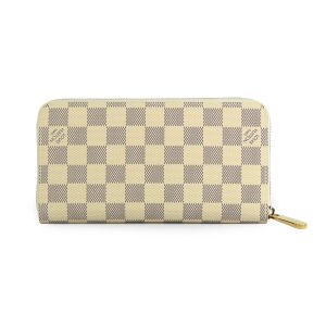 La cartera Clémence grabada con la emblemática Canvas Damier Azur texturizada, es ideal para un estilo elegante. Tiene un compartimento espacioso y posee elegantes detalles en color dorado, así como un tirador de piel sintética que permite usarla como clutch.